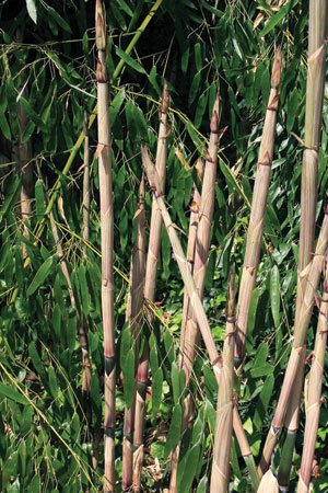 Bamboos are woody reed-like grasses that have a shrubby growth habit. The three species featured here are popular ornamentals that were introduced and planted widely but other species and cultivars are also available in the nursery trade. These species have been reported by numerous sources as being invasive in natural areas (see below). Giant or switch cane (Arundinaria gigantea) is the only species of bamboo native to the U.S. It is found throughout the Southeast just into southern Maryland and is about the size of Pseudosasa.