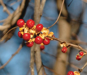 Oriental bittersweet is a vigorous growing plant that threatens native vegetation from the ground to the canopy level. Thick masses of vines sprawl over shrubs, small trees and other plants, producing dense shade that weakens and kills them. Shrubs and trees can be killed by girdling and by uprooting as a result of excessive weight of the vines. In the Northeast, Oriental bittersweet appears to be displacing the native American bittersweet (Celastrus scandens) through competition and hybridization.
