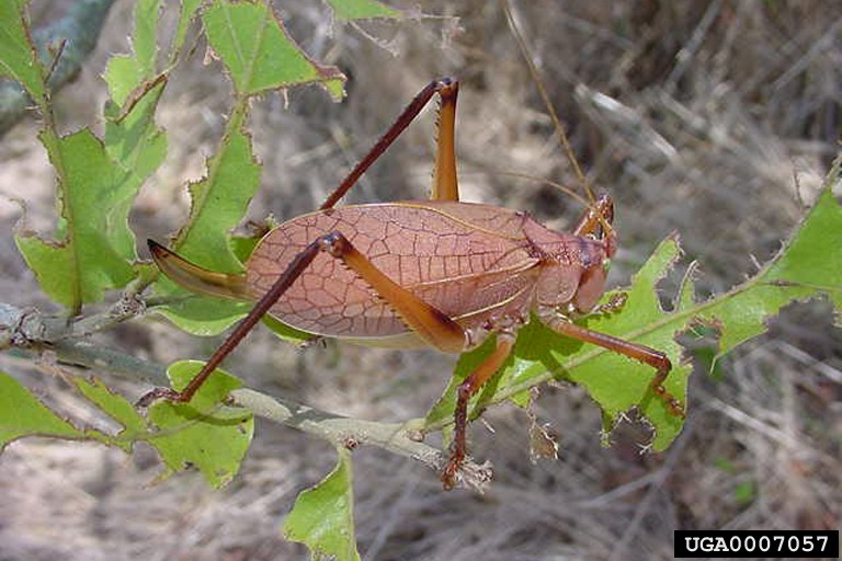 Closer examination of damaged post oak trees revealed that a very unusual outbreak of the katydid was causing the defoliation. The katydids were found on post oak foliage and evidence of their feeding was very obvious