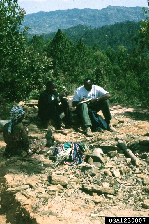 Kamau Wakanene Mbuthia interviewing couple near Mbololo Forest, Taita Hills in July 2002