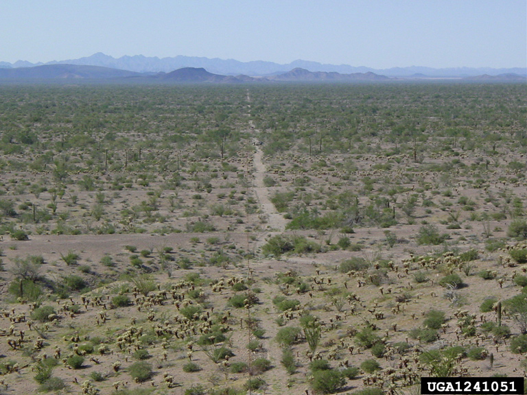 International border road in Cabeza Prieta National Wildlife Refuge. USA on right; Sonora, Mexico on left.