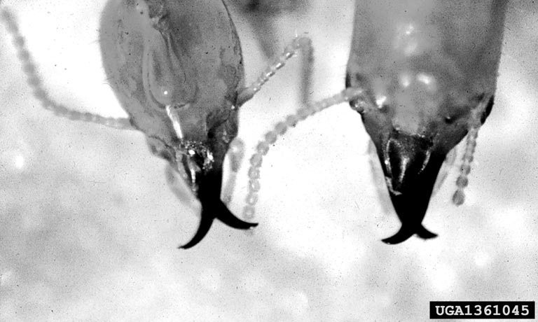 Heads of termite soliders; Formosan-left, eastern subterranean-right
