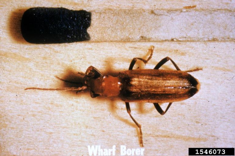 Larvae of these beetles cause damage to moist or wet wood in contact with water or soil.