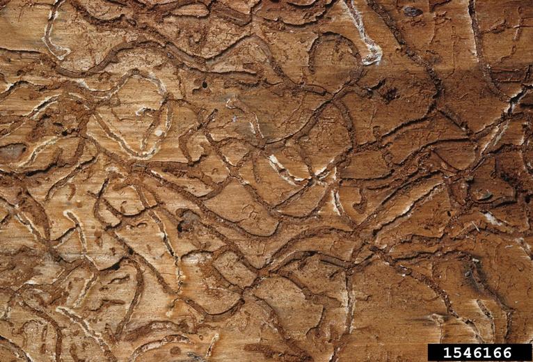 Gallery formed in the inner bark of pine by the southern pine beetle