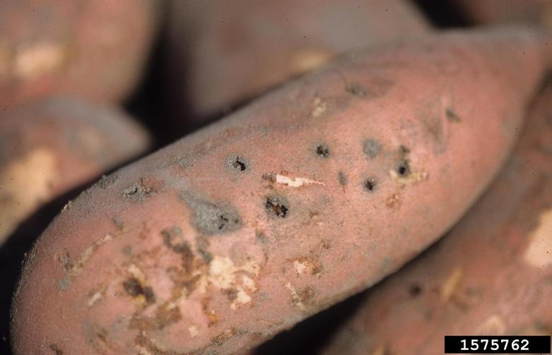Wireworm damage on sweetpotato. October 1998