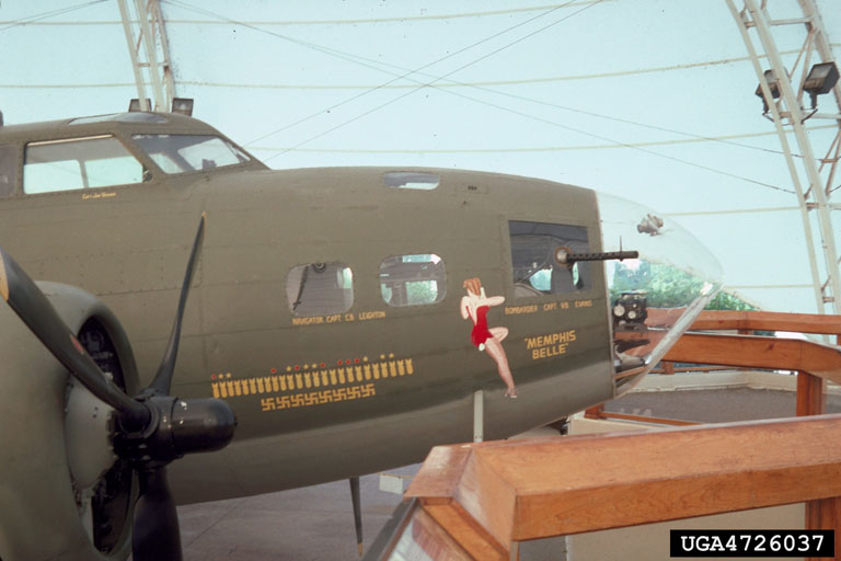 closeup of cockpit area of Memphis Belle, World War II bomber,