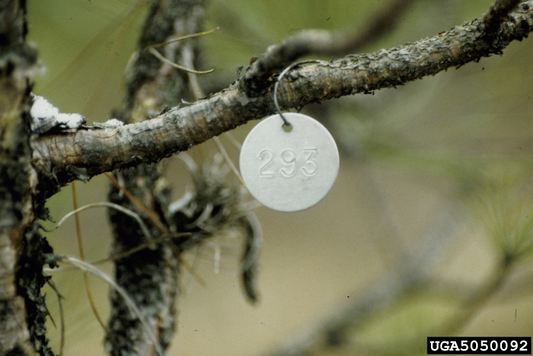 Red pine tagged for a study on shoot blight caused by Diplodia pinea