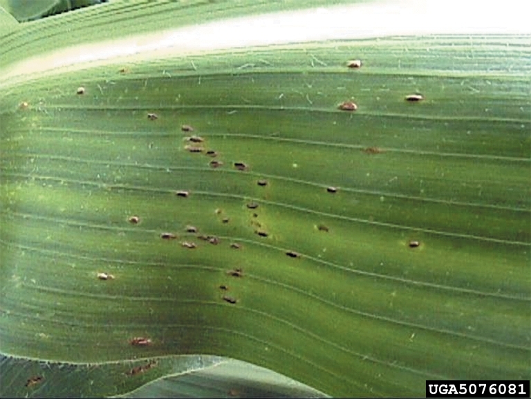 Small, slender, brown to black spots that run with the leaf vein. May cover the entire leaf.