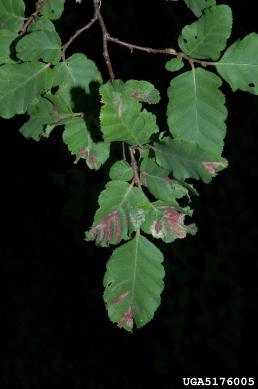 felt pattern on foliage characteristic of erinium mite infestation; Species unknown