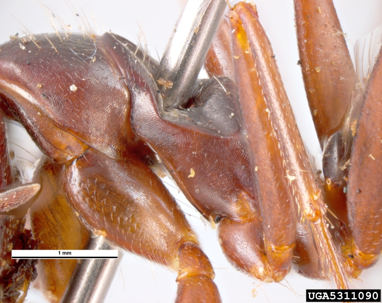Numerous erect hairs are present on the dorsal surface of the alitrunk, petiole, and the entire surface of the gaster. Appressed pubescence is sparse on most surfaces of the body, although fairly abundant on the dorsum of the alitrunk, somewhat scattered on the side of the propodeum, and very abundant and lon gon the gaster; USA. New Orleans, 27 Jan 1972, ex shipping dunnage.