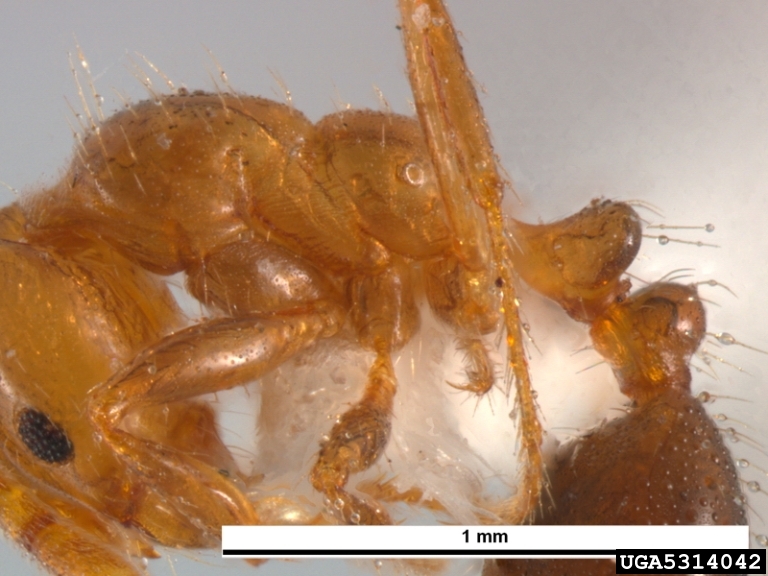 Fire ants are ~2-6 mm long: variation in size is one distinguishing characteristics. They are coppery-brown in color on the head and body, with a darker abdomen.