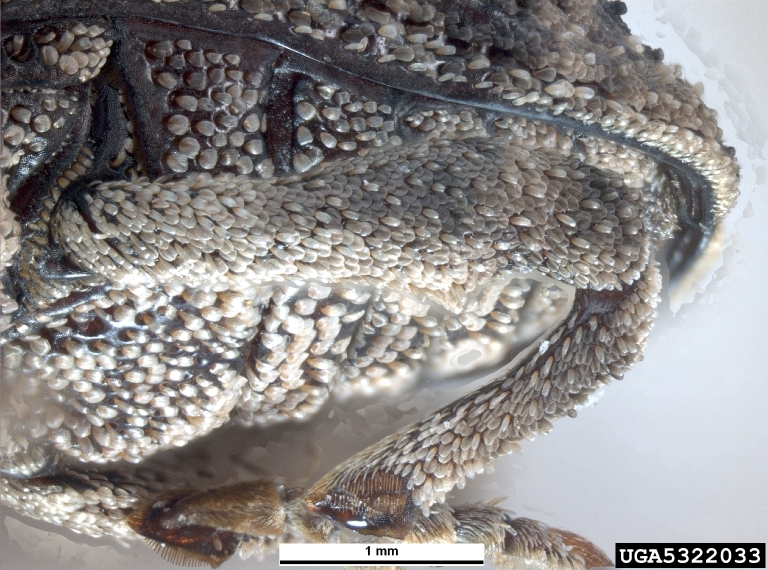 Hind leg shown. Femora with single large tooth ventrally, profemora stout, distinctly clavate, tarsal claws free, simple; M. Weinert and S, Barclay, GPS 10 34.8792 S and 142 12.8522 E . Survey Collection no : is KAH 149. Det. by D. MacLeod,9 Nov 2004.