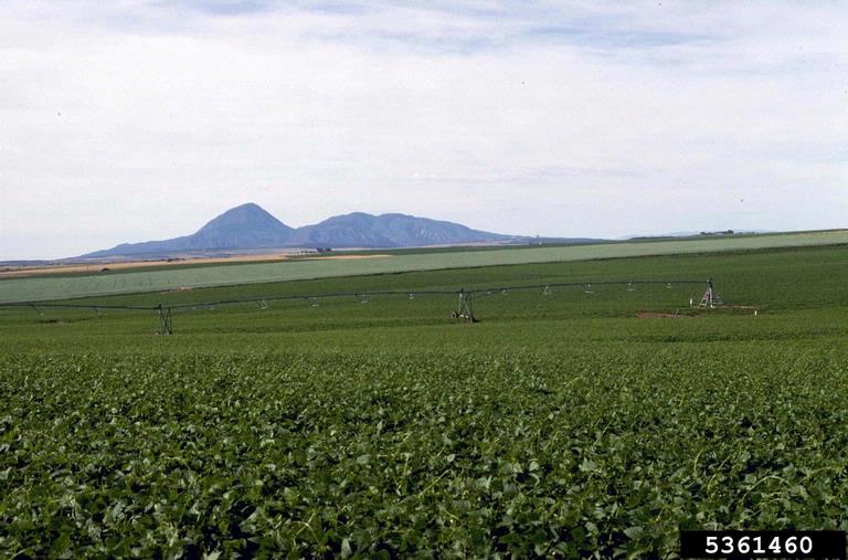 Mid-season scenic view of a dry bean field near Yellow Jacket, Colorado.