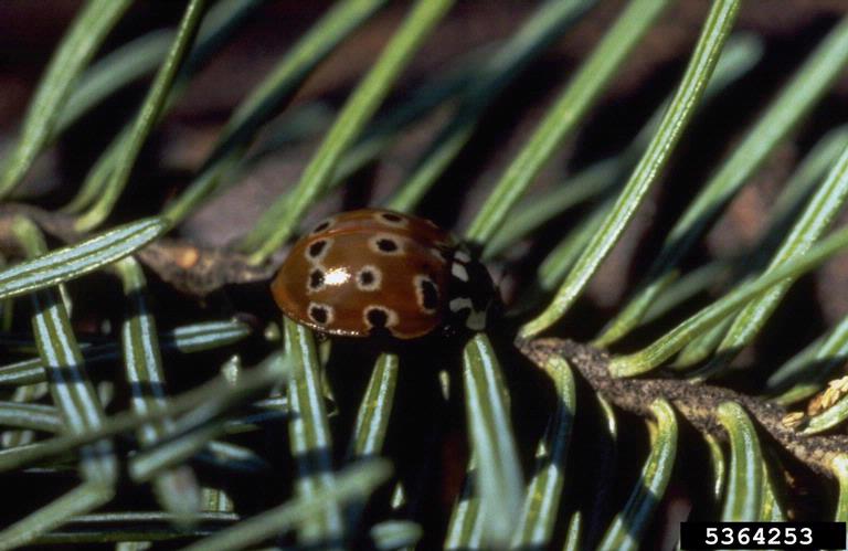 The adult of the eye-spotted lady beetle (Anatis mali).