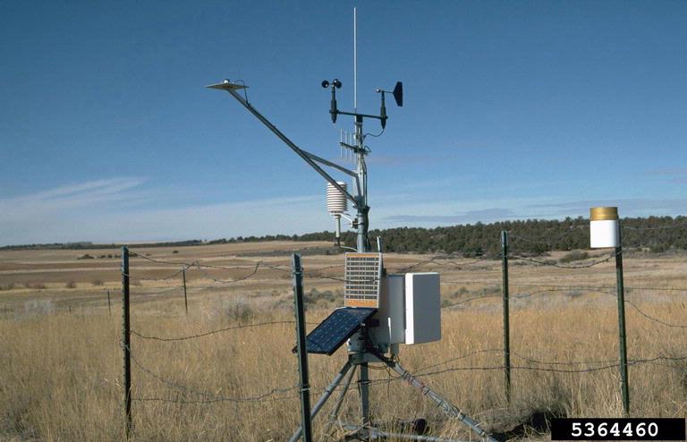 A weather station equipment on a field at Dove Creek used for disease modeling and forecasting.