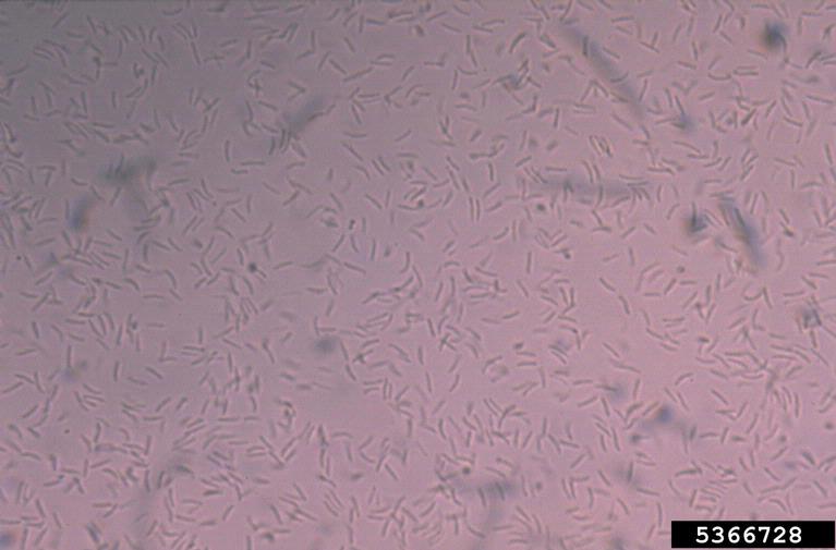 View through a microscope of Cytophora sp. spores, the causative agent of Cytospora canker.