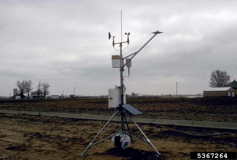 A weather station equipment on a field at Peckham used for disease modeling and forecasting.