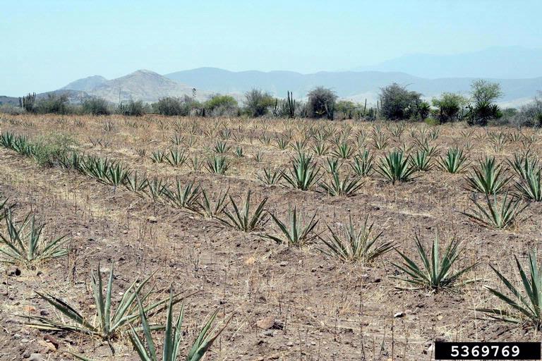 A field of young plants in oaxaca, Mexico. This species is the most common Agave used in production of mezcal. It is locally known as maguey