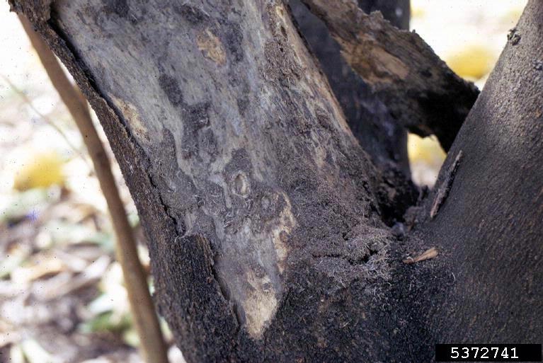 wood borer activity in lesions, 6 weeks after strike