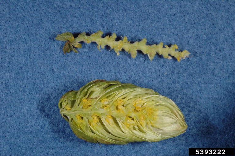 Common hop cone and rachis in the laboratory.