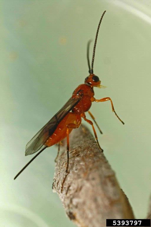 adult female 4mm long head to tip of abdomen with out the ovipositor