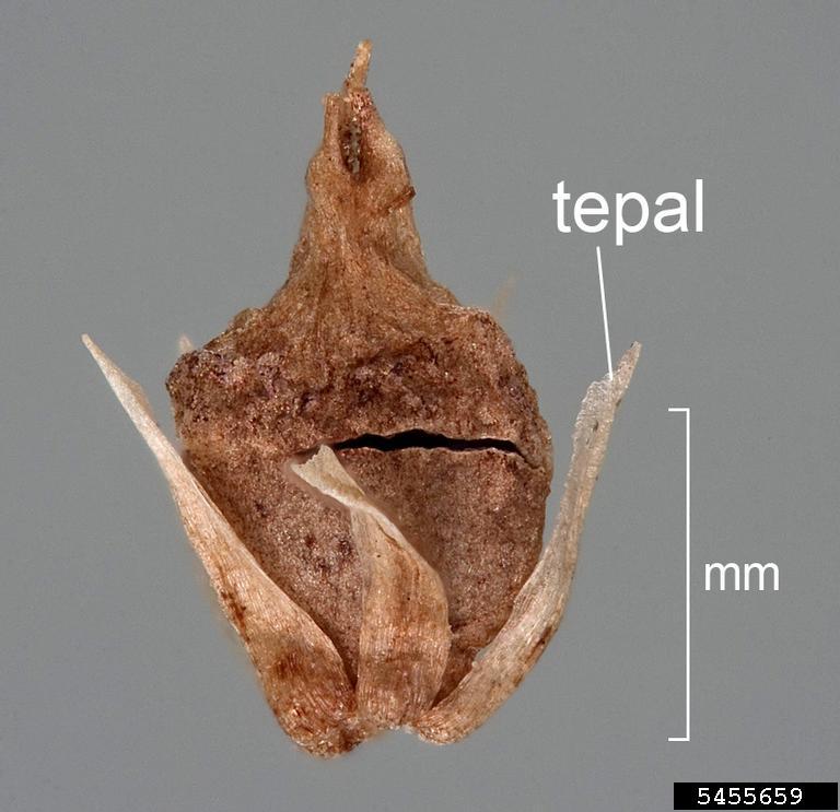 Fruit with tepals. Circumscissile dehiscence has begun.