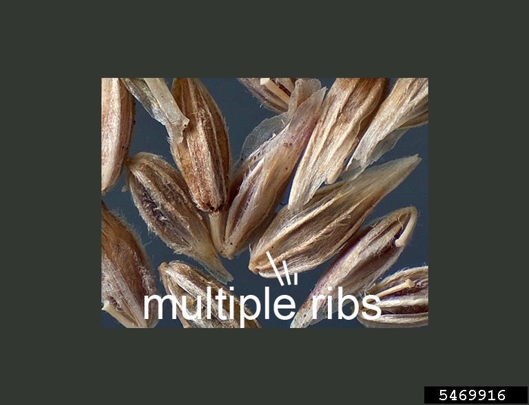 Florets, close-up. Note multiple distinct ribs on lemma.