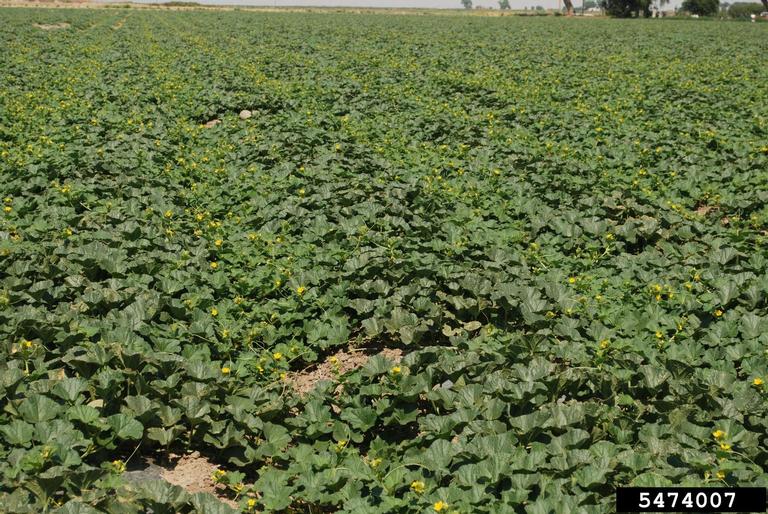 plant and flower development of cantaloupe grown on black plastic with drip irrigation