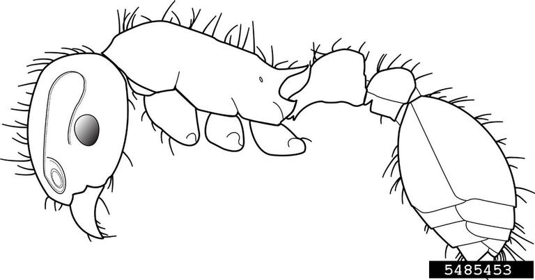 The erect hairs are long, acuminate, flexuous and moderately abundant, but are never bifid. Used in Antkey to separate Tetramorium bicarinatum, Tetramorium insolens, Tetramorium caespitum_cf, Tetramorium pacificum, Tetramorium tonganum and Tetramorium tsushimae from other Tetramorium species.