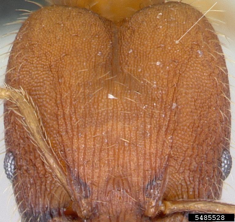 The posterolateral lobes with a distinct punctate ground sculpture, giving the head a dull appearance, and also lacking rugae. Used in Antkey to separate the major workers of Pheidole anastasii, Pheidole bilimeki and Pheidole punctatissima from those of all other Pheidole species.