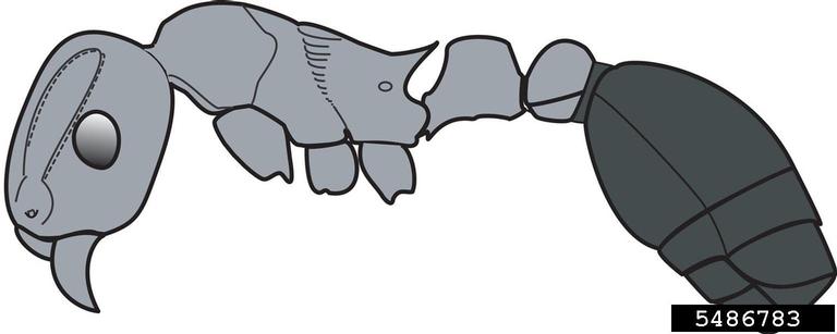 The entire body is orange to reddish brown, excpet for the gaster which is a distinctly darker brown to black. Used in Antkey to separate Tetramorium bicarinatum, some specimens of Tetramorium caldarium and some specimens of Tetramorium simillimum from all other Tetramorium.