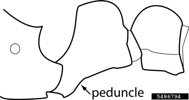 The petiolar peduncle is relatively thin in profile. Used in Antkey to separate Tetramorium caldarium from Tetramorium simillimum. The character, as it is presently defined, is ambiguous and requires a more detailed examination before its usefulness is confirmed.