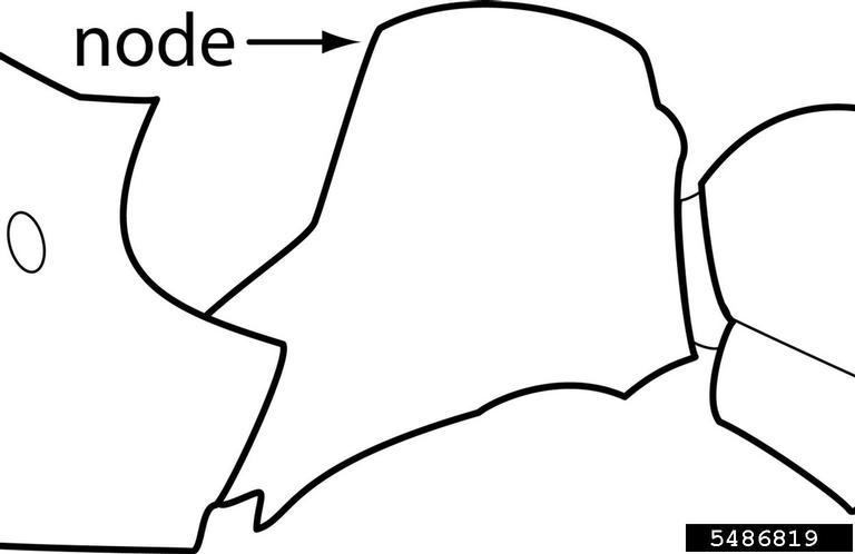 The petiolar node is relatively thick in profile. Used in Antkey to separate Tetramorium simillimum from Tetramorium caldarium. The character, as it is presently defined, is ambiguous and requires a more detailed examination before its usefulness is confirmed.