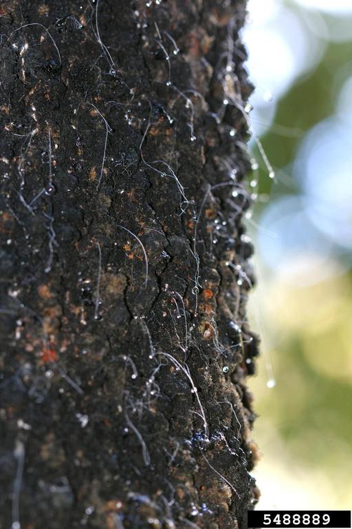 Sooty mold covering black beech. The honeydew is excreted by the sooty beech scale via tubes that pentrate the sooty mold crust.