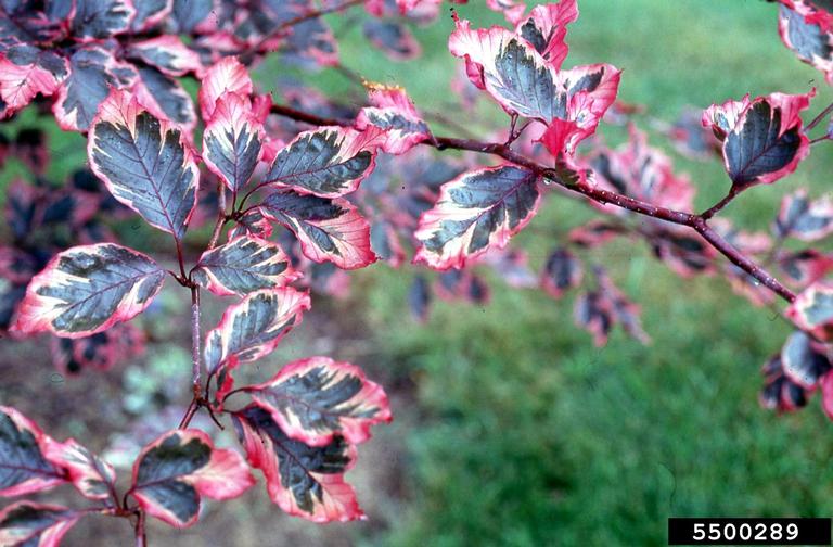 Foliage is tricolor beech and has white variegation as well as green and rosy