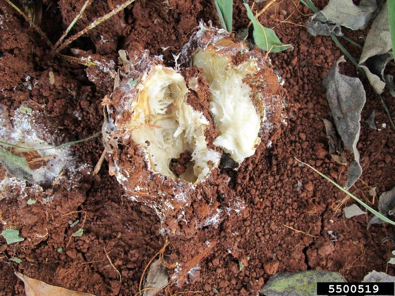 Rotted tuber of Jerusalem artichoke infected with Sclerotium rolfsii