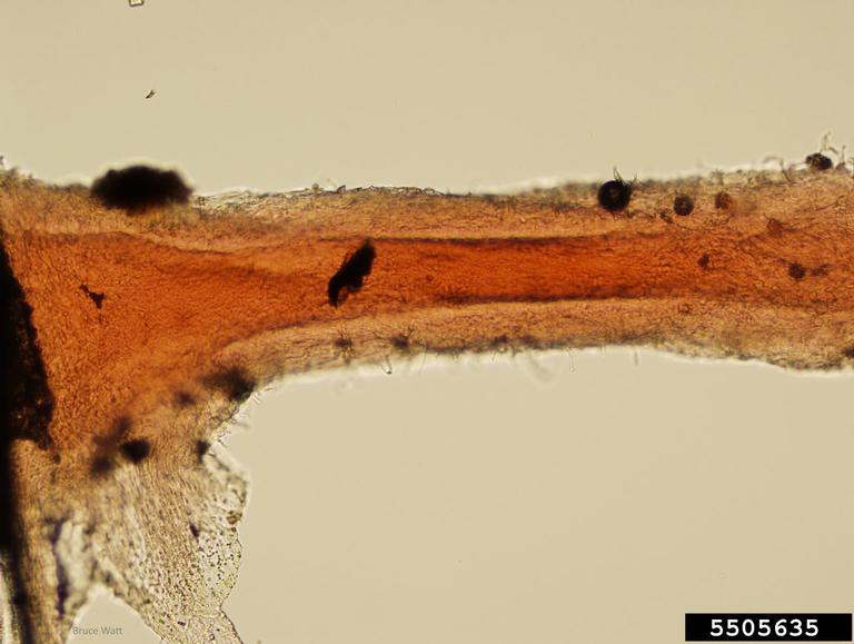 Sectional view of sclerotium showing an outer layer of hyphae surrounding a medullary core
