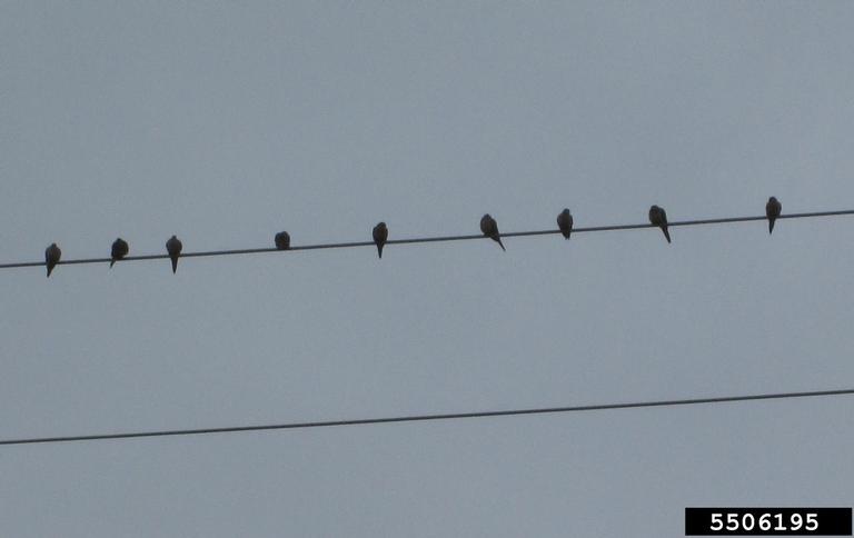 Mourning Doves are gregarious and have an affinity for perching on power lines. They also have a distinctive profile that makes them identifiable at a distance.