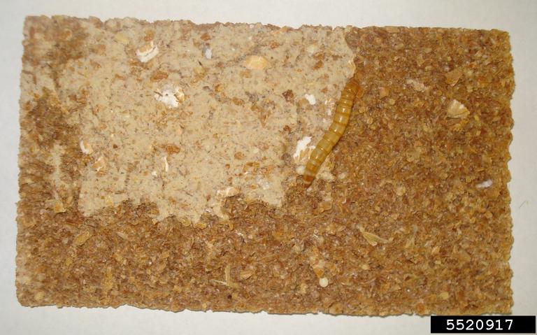 Feeding damage of yellow mealworm larvae on oat crackers