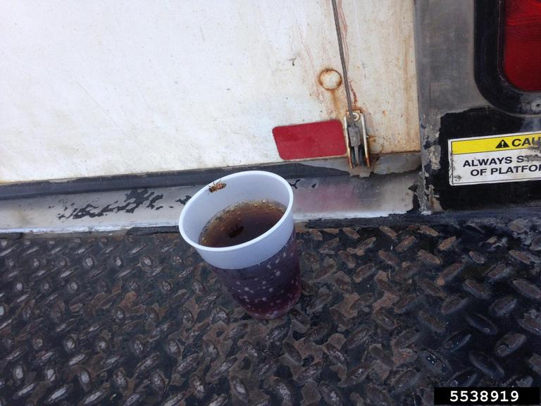 honey bee attracted to a cup of soda