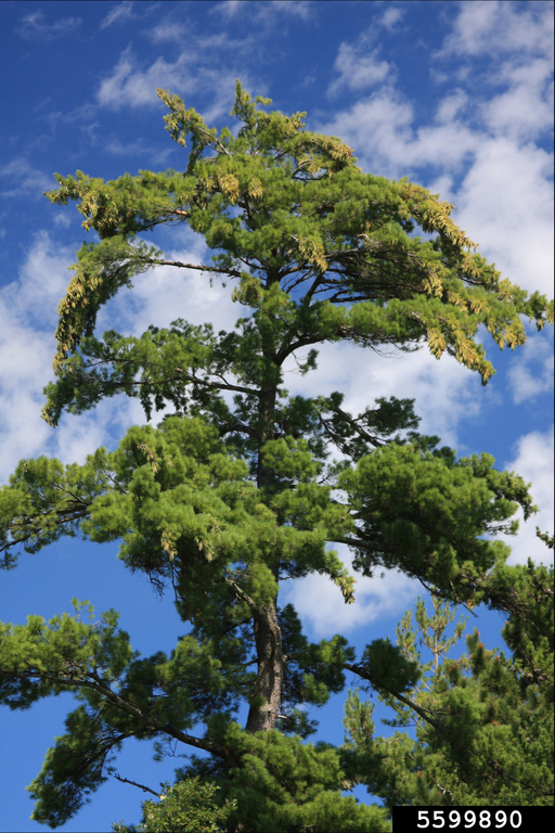 white pine crown with a heavy cone crop, photo taken in mid-August.