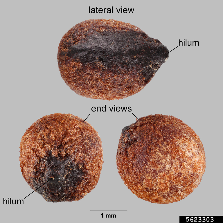 Three views of one seed. Germplasm from the U.S. National Arboretum (BARC Herbarium, FPI 79904). Collected from Russia.