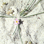 Native to South Africa, Romulea rosea is an attractive herb in the Iris family (Iridaceae) that is often cultivated as an ornamental. Considered a weed in pastures and along roadsides in Australia, R. rosea was introduced into California (North America) by two sources; first by the import of its seed for horticulture, and then later as a contaminant in Trifolium subterraneum (subterranean clover) seed from Australia (Hrusa, 2000). First detected in California from the Carmel Highlands, R. rosea is reported as having tripled its area between 1999 to 2000 along trails in the Elkhorn Slough (Monterey) area (Otter, 2000). It has also been reported from the Point Reyes coastal region. Inland, R. rosea has only been reported from a single grassland site at approximately 500 ft elevation in Eldorado County (Hrusa, 2000). R. rosea has the potential to spread along trails and walkways along the California coast, and potentially inland at low elevations. It does not however, seem to pose a large threat of invading undisturbed natural areas or significantly changing community structure.