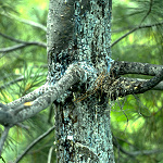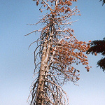 White pine blister rust is a disease that rivals chestnut blight for impact on North American ecosystems. The fungus attacks five-needle pine species (Pinus) in both eastern and western forests, causing galls that eventually girdle branches and stems. Gooseberry and currant species (Ribes) serve as alternate hosts. The fungus thrives in a cool, wet-weather environment, so climate is a major factor in determining rust hazard areas. The rust fungus was introduced in multiple shipments of nursery stock from Europe to Kansas in 1892, eastern Canada and New York in 1906, and western Canada in 1910 (Mielke, 1938; Tainter & Baker, 1996). After introduction, the fungus quickly spread west and north to eastern white pine (P. strobus) populations in the Great Lakes region and northeast and subsequently southward, to high-elevation eastern white pine populations in North Carolina. In western forests, the disease rapidly spread through western white and sugar pines (P. monticola and P. lambertiana), as well as impacting whitebark and southwestern white pines (P. albicaulis and P. strobiformis; USDA Forest Service, 1991; Hoff & Hagel, 1989). Mortality in western white pine stands can approach 94% (Hirt, 1948). More recently, infection of limber pine (Pinus flexilis) has been observed in one stand in the central Rocky Mountains (G. I. McDonald pers. comm. to S. Schlarbaum). Limber pine is a five-needle pine species that is not commonly harvested for timber or pulp, but it is a common component of western forest ecosystems. Devastation of this species would have significant impacts on the structure and function of these ecosystems as well as to recreational use of the forests. In Idaho, scientists have found three sites at which the white pine bister rust pathogen is hybridizing with a native rust, C. comandrae, on limber pine. The hybridization is occurring despite a lack of shared hosts. Scientists have not yet determined whether this event is widespread or whether it demonstrates a new hybridization mechanism. Such a mechanism might be synchronized sporulation at these high elevations, or insect transmission of the spores (Hamelin, 2004). Different approaches have been used to address white pine blister rust. In eastern forests, a massive gooseberry and currant eradication program reduced populations of the alternate host for the pathogen. This strategy was particularly effective for intermediate hazard areas (Tainter & Baker, 1996). Exploiting natural resistance, long-term breeding programs were initiated by the USDA Forest Service (Bingham, 1983). Rust-resistant western white, sugar pine and eastern white pine seedlings are available for planting (Bingham, 1983; Garrett, 1986). This is a dramatic change from the late 1960s, when planting of western white pines was generally discontinued (Ketcham et al., 1968). Rust-resistance breeding programs continue today in the United States and Canada (Hunt, 2002; Neuenschwander et al., 1999; Sniezko et al., 2000). Whitebark pine is not a commercially important species for timber and, therefore, has not received much attention in terms of resistance breeding. This is unfortunate, as Schmidt (1992) estimated that 80-90% of the whitebark pines in Montana's Glacier National Park and the Bob Marshall Wilderness area have blister rust. In British Columbia, a sampling of 54 stands revealed 21% of the trees were dead and as high as 44% of the remaining trees had blister rust (Campbell & Antos, 2000). Other whitebark pine populations have similar mortality and infection percentages. Whitebark pine occupies a critical niche in western ecosystems by producing large seeds that are extremely nutritious and important in food chains of 110 animals. Whitebark pine seeds are especially important diet components of grizzly bear, black bear, red squirrel, and Clark's nutcracker (Kendall & Arno, 1989; Schmidt, 1992; Reinhart et al., 2001). Sources Bingham, R. T. 1983. Blister rust resistant western white pine for the Inland Empire: the story of the first 25 years of the research and development program. USDA Forest Service General Technical Report INT-146. 45 pages. Campbell, E. M., and J. A. Antos. 2000. Distribution and severity of white pine blister rust and mountain pine beetle on whitebark pine in British Columbia. Can. J. For. Res. 30: 1051-1059. Garrett, P. W. 1986. Role of tree improvement in providing pest-resistant eastern white pine (Pinus strobus L.). In Eastern White Pine: Today and Tomorrow Symp. Proc., U.S. Dep. Ag. For. Serv. Gen. Tech. Rep. WO-51, pp. 75-88. Hamelin, R.C. 2004. Exotic and native rust pathosystems: A population genomics approach. Presentation given at the American Phytopathological Society annual meeting August 2, 2004 - Special Sessions: Co-Evolutionary Processes of Introduced Pathogens and Hosts in Natural Ecosystems. Hirt, R. R. 1948. Evidence of resistance to blister rust by eastern white pine growing in the Northeast. J. For. 46: 911-913. Hoff, R. and S. Hagle. 1989. Diseases of whitebark pine with special emphasis on white pine blister rust. In Proceedings - Symposium on Whitebark Pine Ecosystems: Ecology and Management of a High-Mountain Resource. Bozeman, MT. March 29-31, 1989. Schmidt, W. C., and K. J. McDonald, Compilers. pp. 179-190. Hunt, R. S. 2002. Relationship between early family-selection traits and natural blister rust cankering in western white pine families. Can. J. Plant Path. 24: 200-204. Kendall, K. C. and S. F. Arno. 1989. Whitebark pine - an important but endangered wildlife species. In Proceedings - Symposium on Whitebark Pine Ecosystem: Ecology and Management of a High-Mountain Resource. Bozeman, Mt. March 29-31, 1989. Schmidt, W. C. and K. J. McDonald, Compilers. pp. 264-273. Ketcham, D. E., C. A. Wallner, and S. S. Evans, Jr. 1968. Western white pine management programs realigned on northern Rocky Mountain National Forests. J. Forestry 6: 329-332. Mielke, J. L. 1938. Spread of blister rust to sugar pine in Oregon and