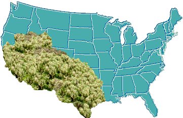 The billowing reddish branches on the range map below indicate Tamarisk's main range---it occurs other places
